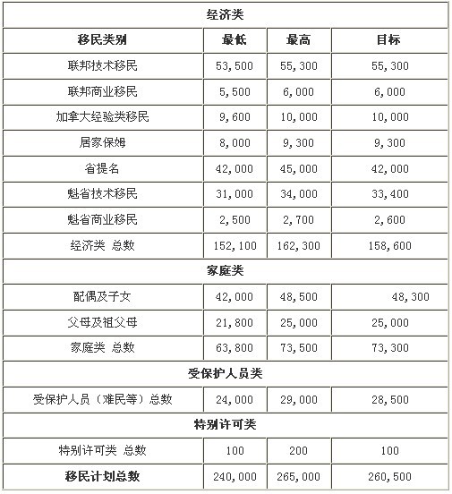 2013年加拿大移民名额分配计划